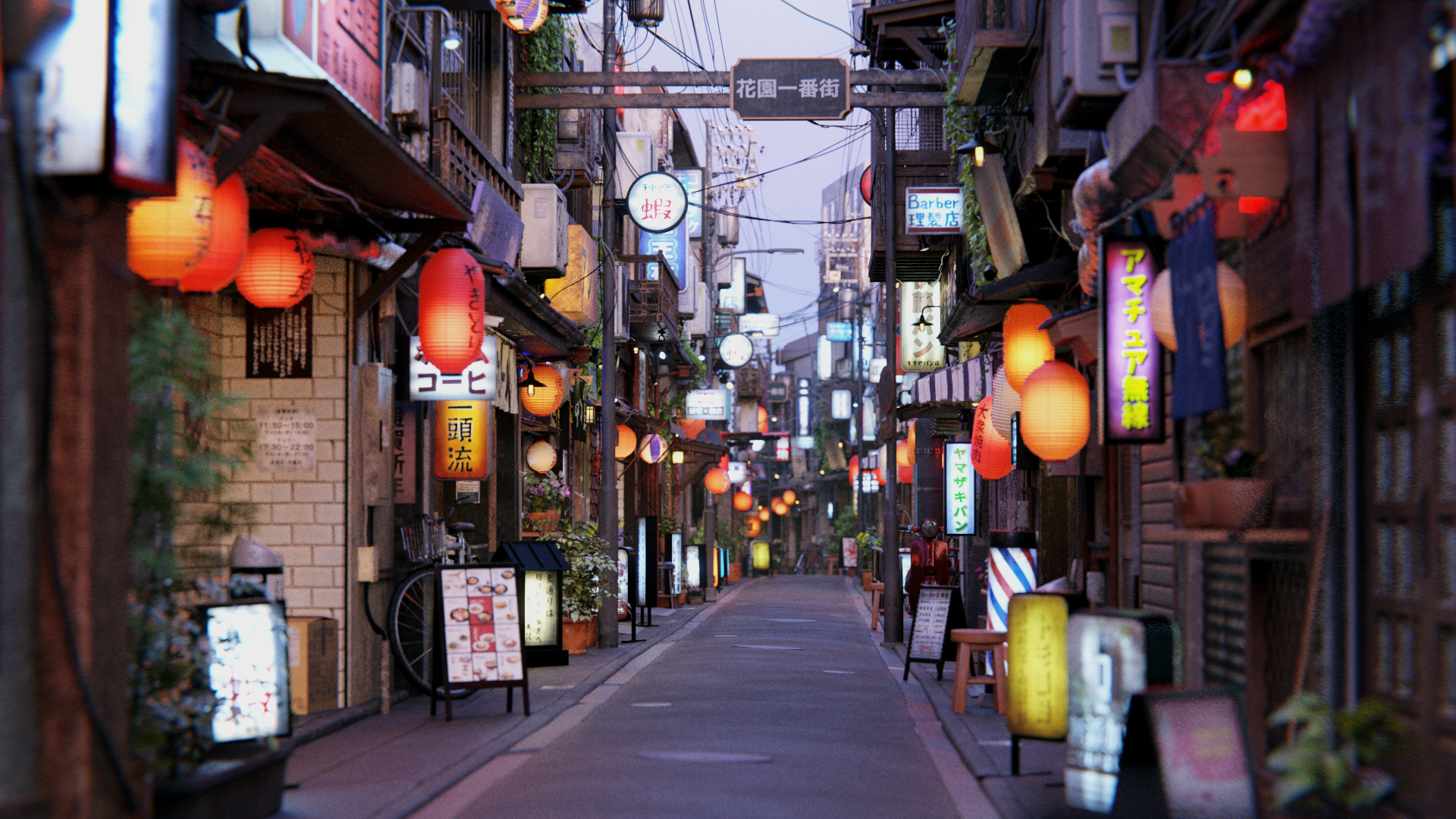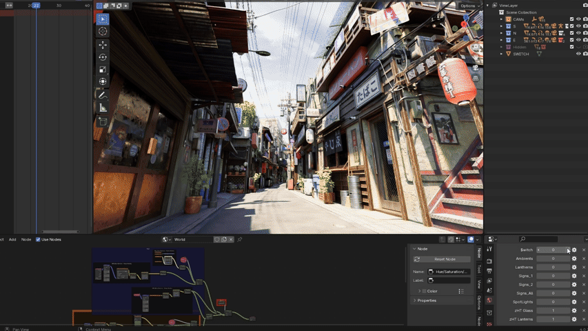 Blender Project of The full Japanese Street With All The Assets and Features Mentioned